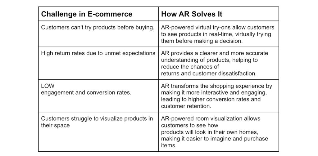 With AR, e-commerce stores are able to bridge the gap between online shopping and the experience of seeing products in person, creating a seamless and enjoyable experience for customers.