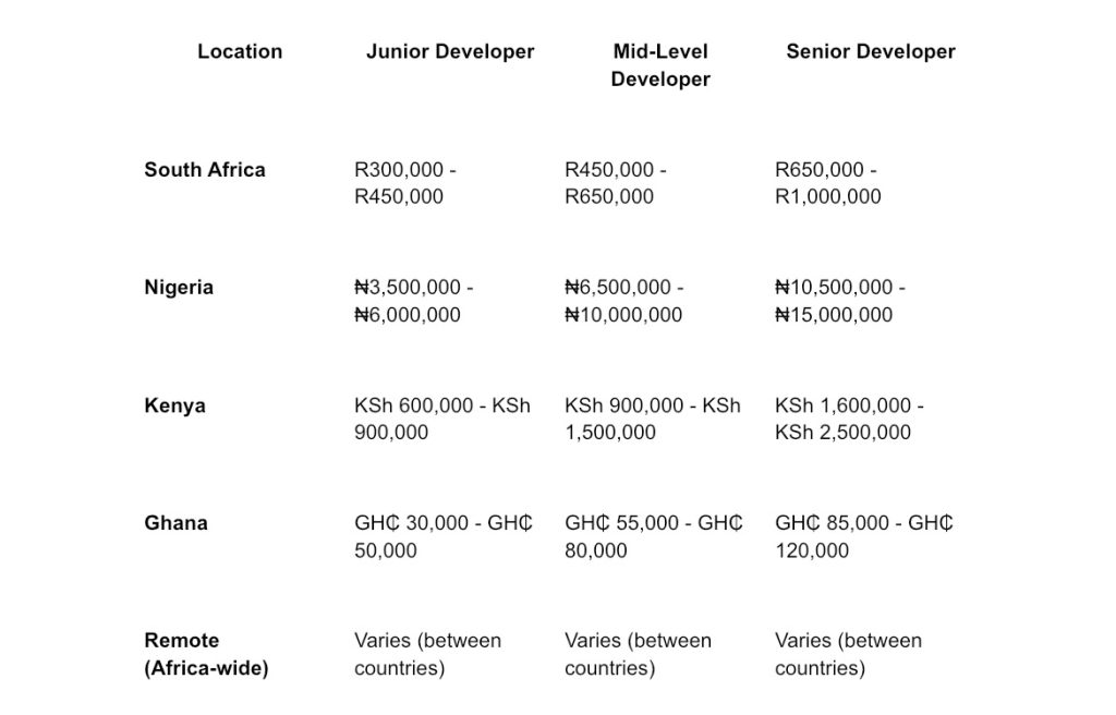 Here’s a breakdown of some typical salary ranges for tech professionals in Africa in 2025, based on role, experience, and location: